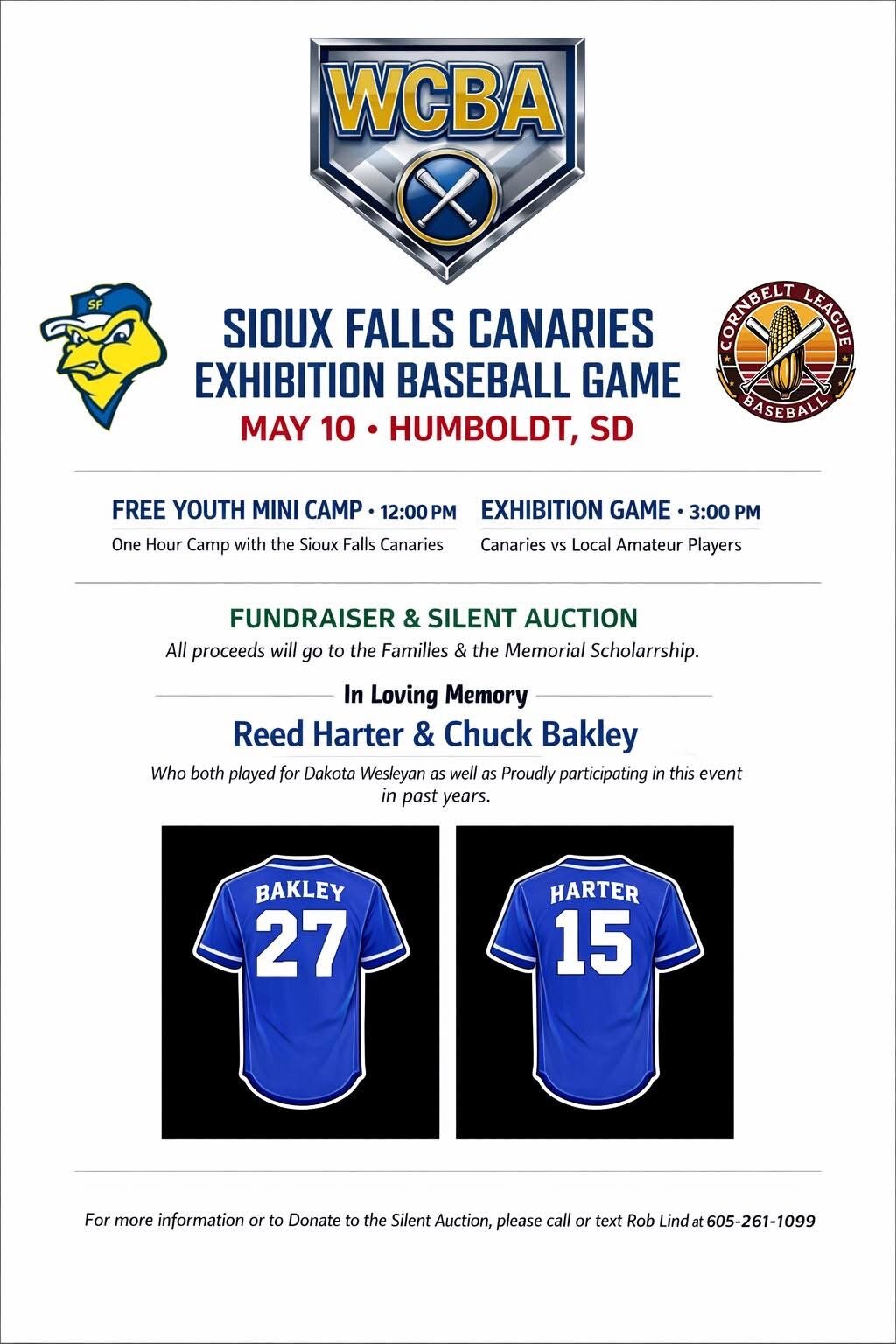 The Sioux Falls Canaries will host a special exhibition baseball game and community fundraiser benefiting the families of Reed Harter and Chuck Bakley and supporting the Heart of the Game Memorial Scholarship.